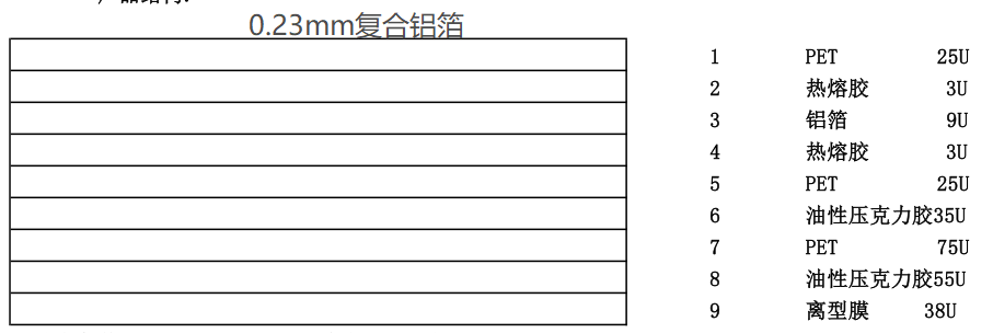 由上圖可以可以看出T0.23mm復(fù)合鋁箔有9層結(jié)構(gòu),使用中將離型膜分離扔掉,余下的就全部貼到FFC排線上去。那么復(fù)合鋁箔各部分的功能呢?