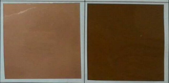 (2)單面有膠壓延銅。銅的延伸率相對無膠銅差一些。僅從外觀圖面看沒太大的區別,這個只能靠實物辨別。總體偏黃色。